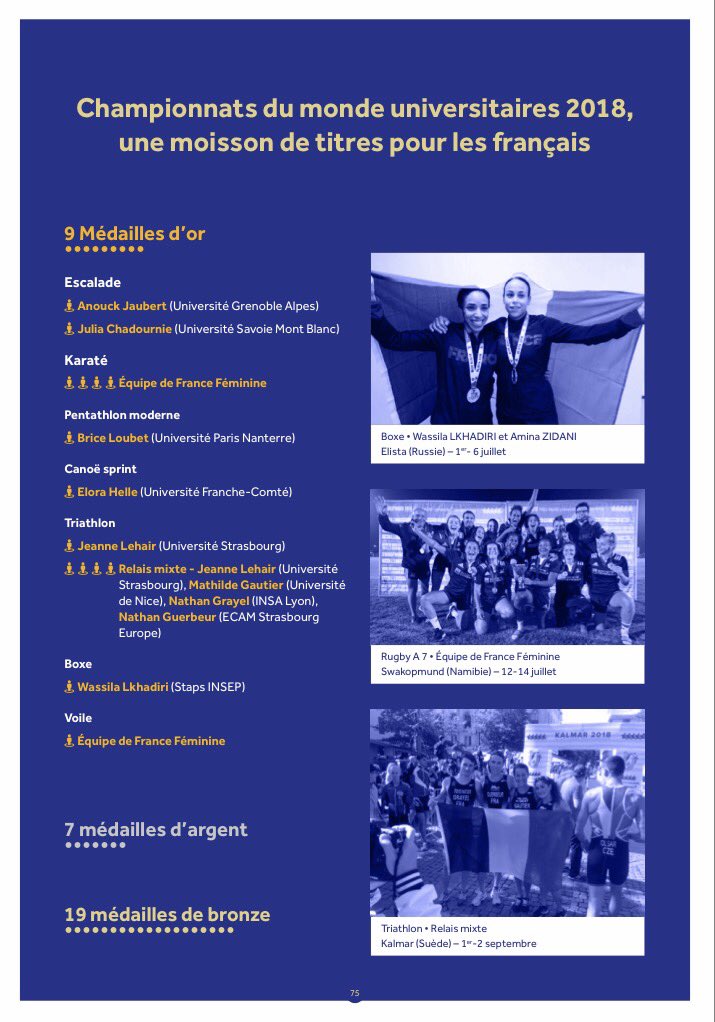 Dans son dossier de presse de rentrée, le Ministère de l’Enseignement Supérieur, de la Recherche et de l’Innovation consacre trois pages à la FFSU et au sport universitaire, en mettant notamment à l’honneur  nos athlètes Champion-n-es du Monde Universitaires 2018. Cliquez sur les images pour consulter le dossier!