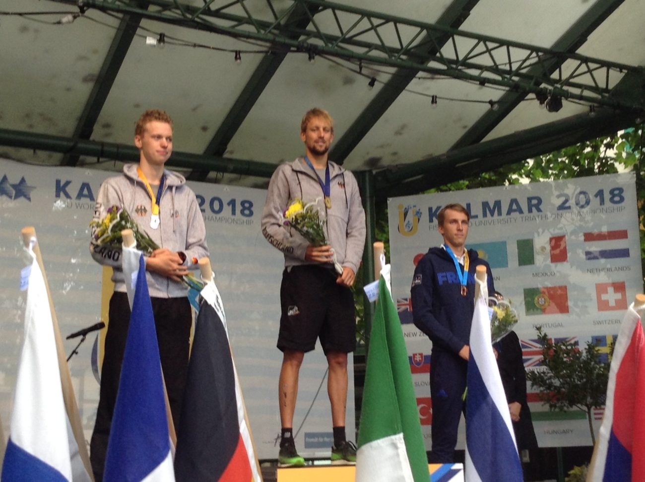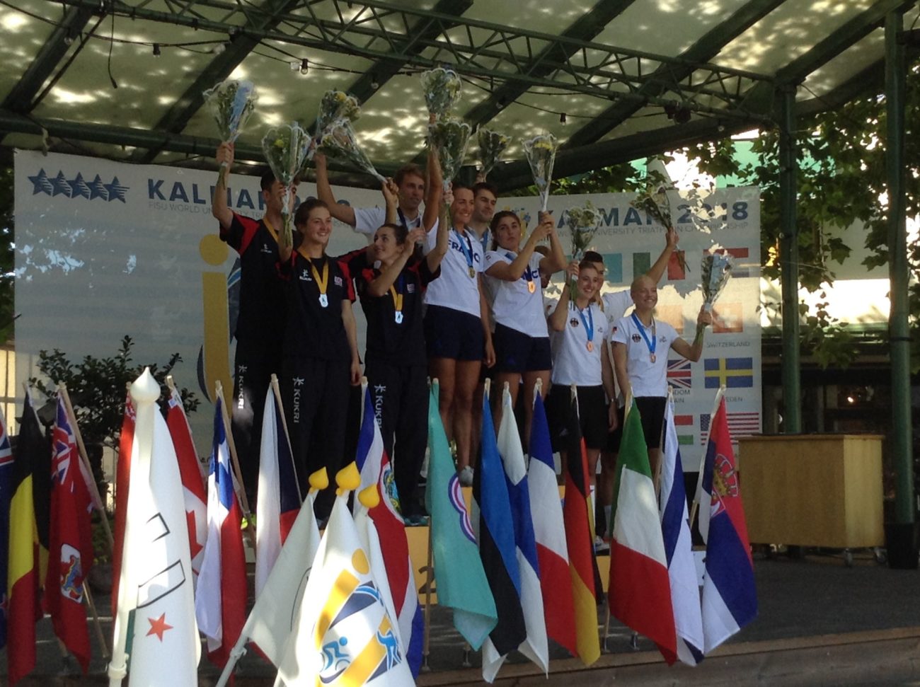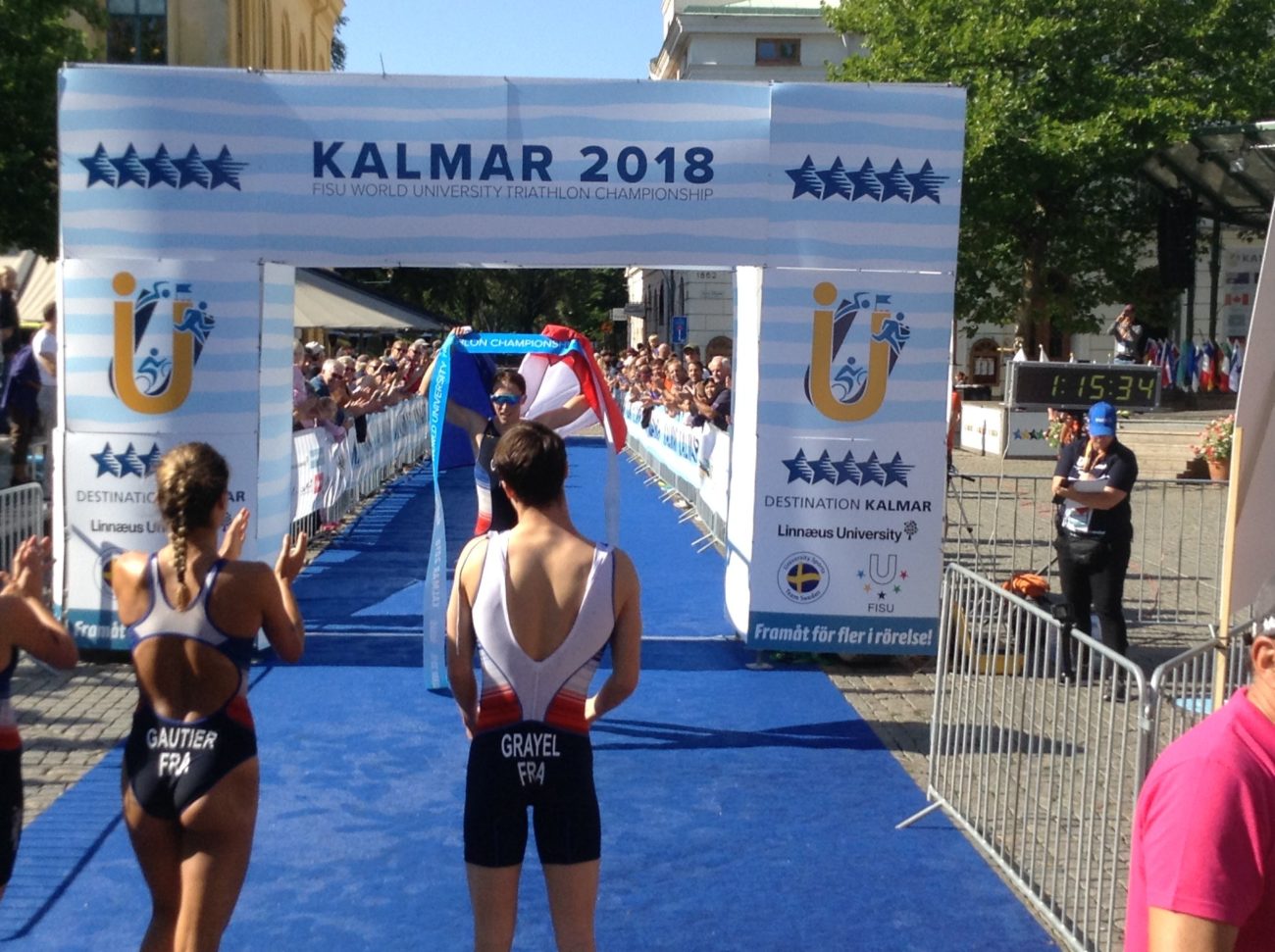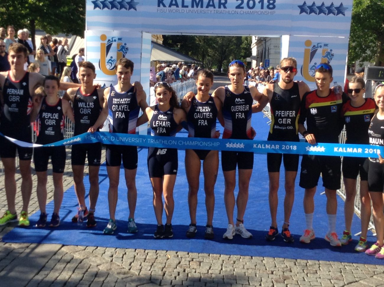 Les triathlètes français ont réalisé une superbe performance lors des Championnats du Monde Universitaires 2018 à Kalmar (Suède)! Les Bleu-e-s ont conquis 3 médailles en trois courses : l’or pour le relais mixte composé de Jeanne Lehair (Université Strasbourg), Mathilde Gautier (Université Nice) , Nathan Grayel (INSA Lyon) et Nathan Guerbeur (ECAM Strasbourg Europe), l’or également pour Jeanne Lehair dans l’épreuve féminine et Nathan Guerbeur en bronze chez les garçons! La FFSU adresse toutes ses félicitations à la délégation tricolore pour cette magnifique prestation d’ensemble!