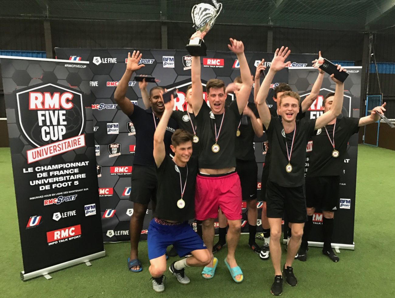 Les Finales nationales de la RMC Five Cup Universitaire, Championnat de France Universitaire de foot à 5, se sont déroulées samedi 27 mai à Paris en présence de 25 équipes. L’Université d’Evry et AMOS Lille ont succédé à l’Université Lille 2 et l’ISC Paris, au palmarès de l’épreuve.