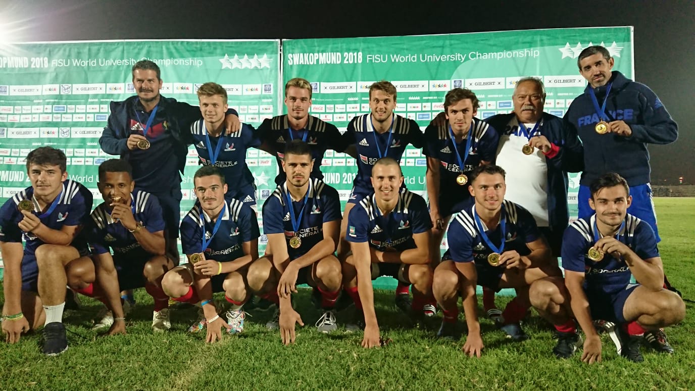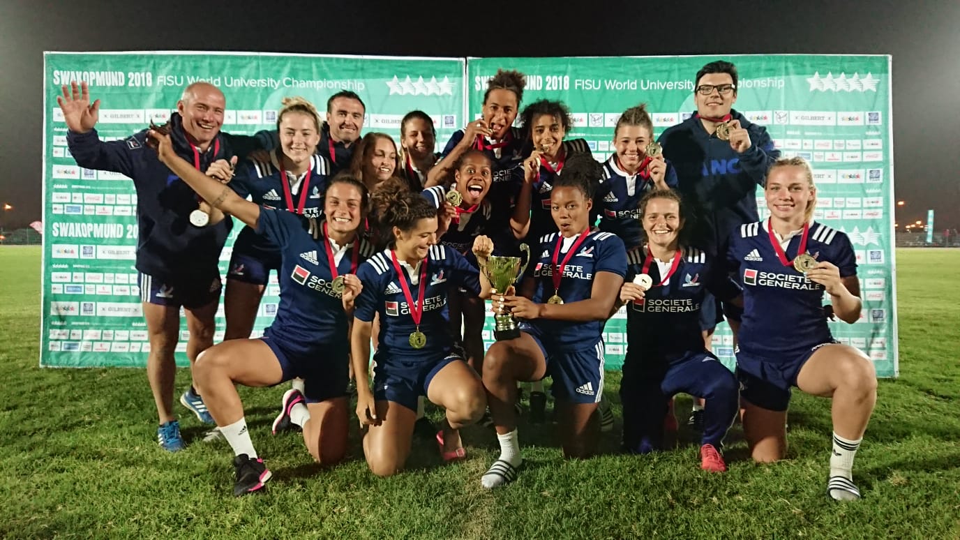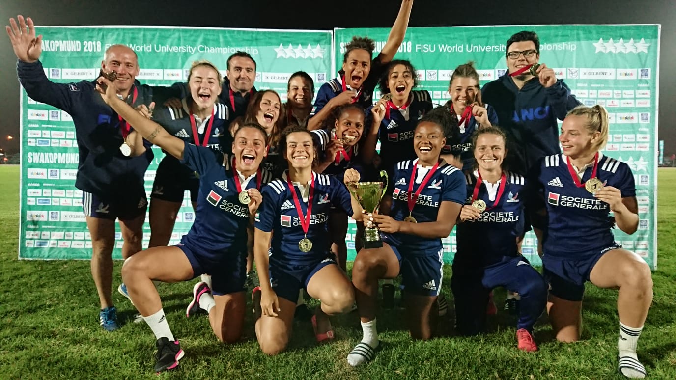En ce 14 juillet 2018, l’équipe de France universitaire féminine de rugby à 7 a décroché le titre de championne du monde en Namibie, en dominant l’Australie en finale (22-7)! Les garçons, battus en demi par l’Afrique du Sud dans les arrêts de jeu (12-14), se sont offert le bronze face à la Namibie (19-8)!