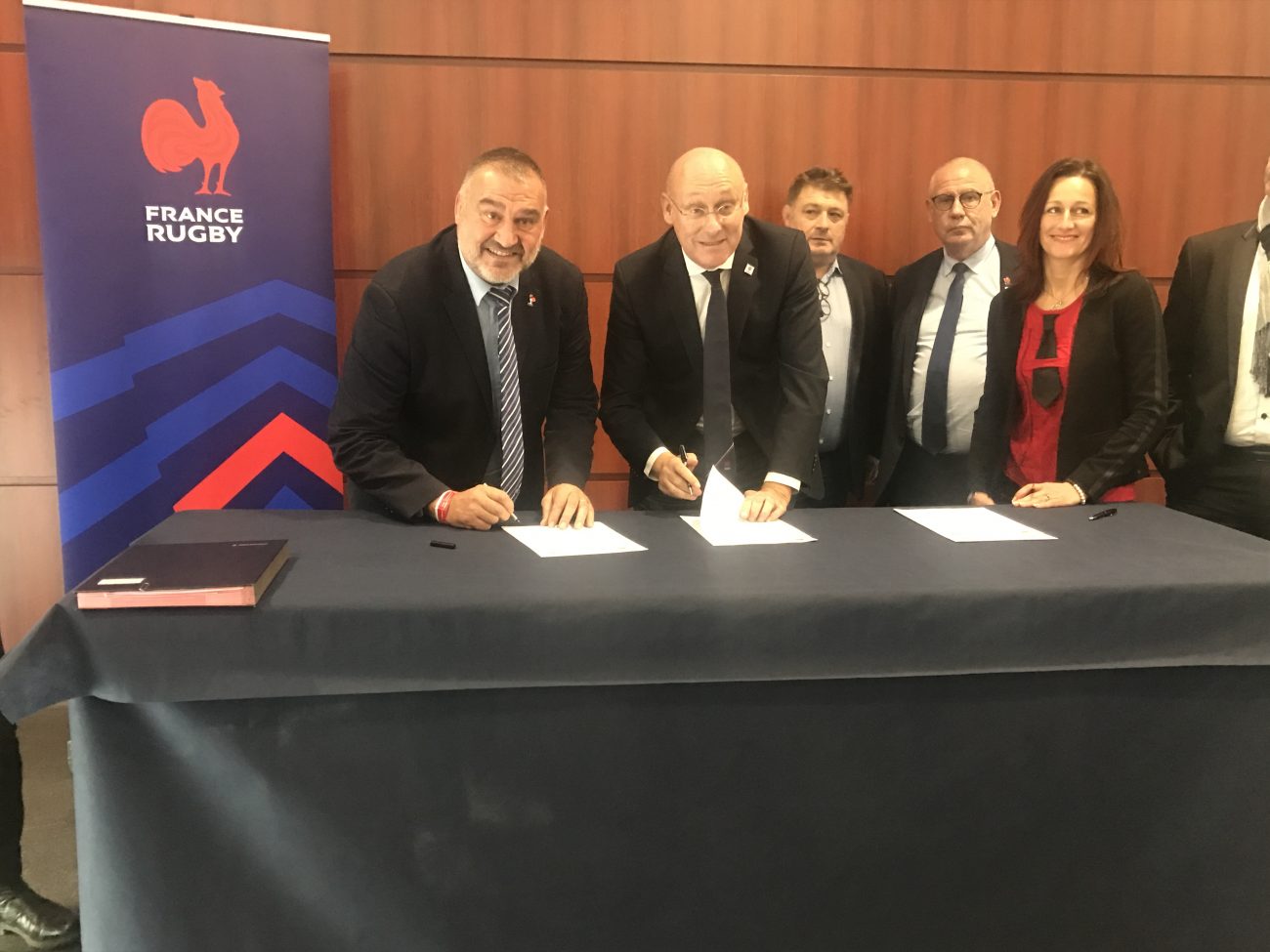 Lors de la rencontre internationale de rugby féminin France-Angleterre , le 9 novembre, au Stade Marcel Michelin de Clermont-Ferrand, a eu lieu la traditionnelle signature de convention entre la FFSU, représentée par son Directeur National Vincent Rognon et la Fédération Française de Rugby, représentée par son Président Bernard Laporte.